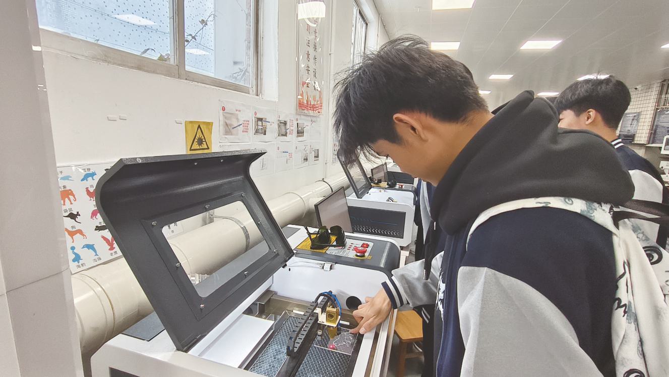 激光切割区成为同学们创意迸发的舞台。高一(72)班的黄泳琪早早构念念好“狮子”挂件图案,在电脑上详细融合每一处线条弧度。跟着激光开始发出的“滋滋”声,木板上逐渐自大出赫然的详尽,他的心里既病笃又充满期待。“狮子”挂件成形后,他注重翼翼取下捧在掌心,脸上敞开灿烂笑貌:“第一次体验激光切割,亲手作念出的作品比任何礼物王人额外,这次研学让我成绩满满!”
