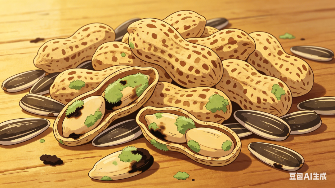 🥜举例发苦的花生、瓜子,可能含有黄曲霉毒素。