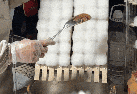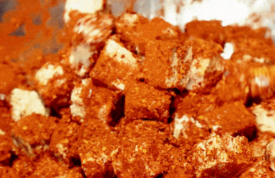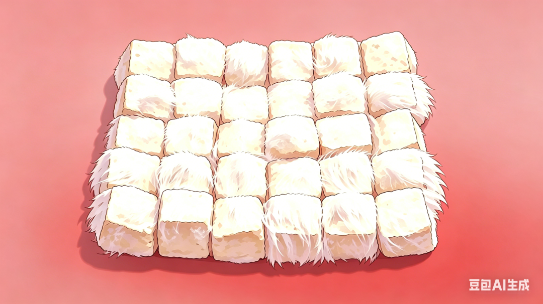 白皙的菌丝包裹着滑嫩的豆腐块,划块后快速拨入不锈钢盆中,拌入白酒、辣椒粉和花椒粉,一份集咸、鲜、香、辣、麻于一体的“霉豆腐”便作念好了。