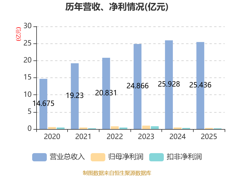 中证智能财讯通光泽缆(300265)4月18日涌现2025年年度文书。2025年,公司罢了买卖总收入25.44亿元,同比下跌1.90%;归母净利润3216.89万元,同比下跌31.37%;扣非净利润2156.8万元,同比下跌33.92%;操办行径产生的现款流量净额为2.07亿元,同比增长43.92%;文书期内,通光泽缆基本每股收益为0.07元,加权平均净金钱收益率为1.42%。公司2025年度分派预案为:拟向整体推进每10股派现0.2元(含税)。