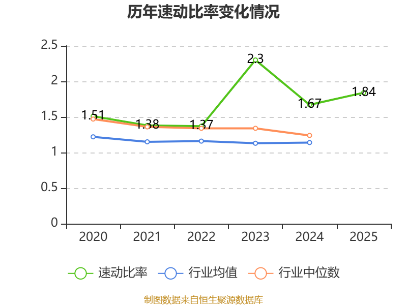 2025年,公司流动比率为2.06,速动比率为1.84。